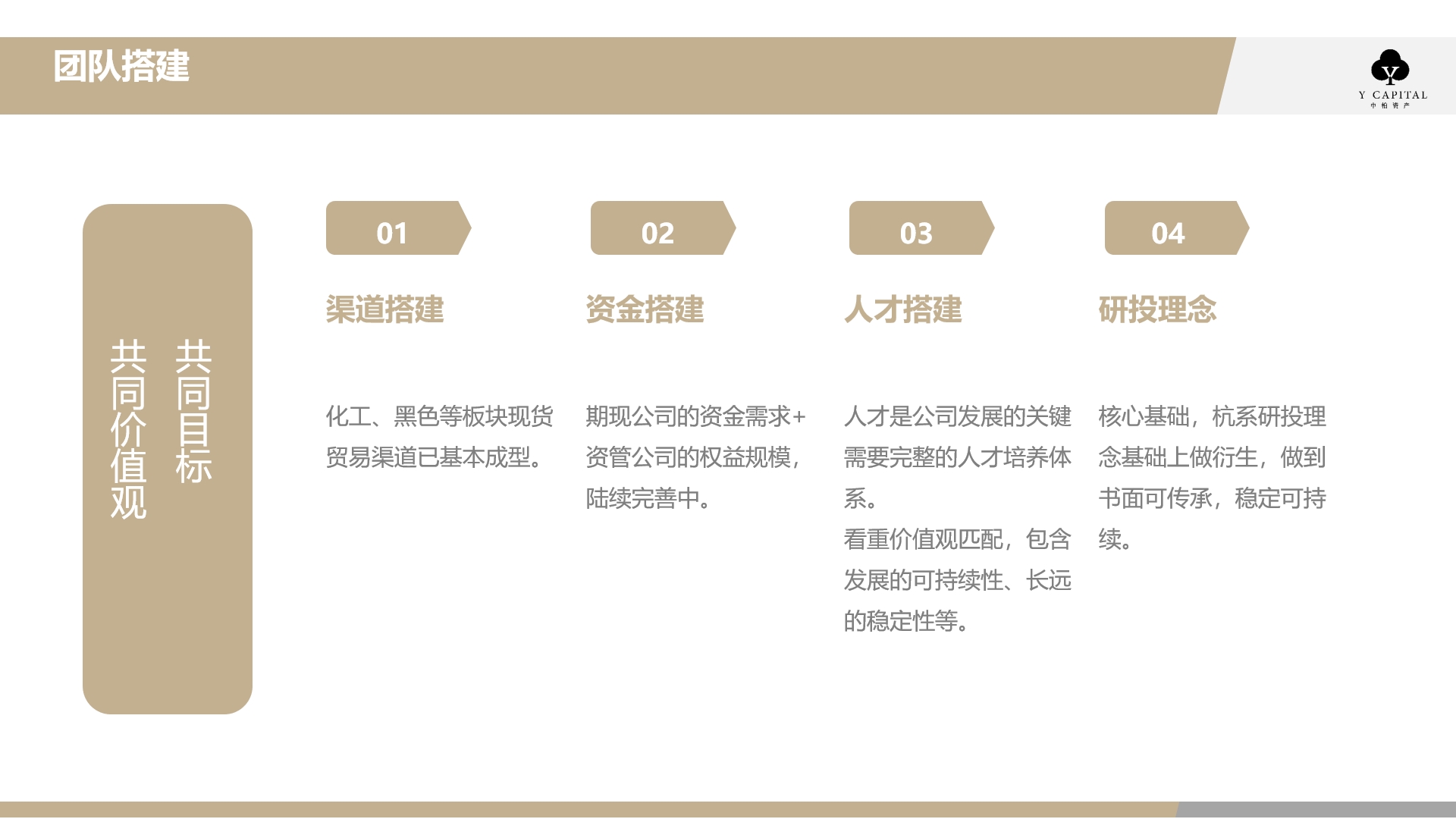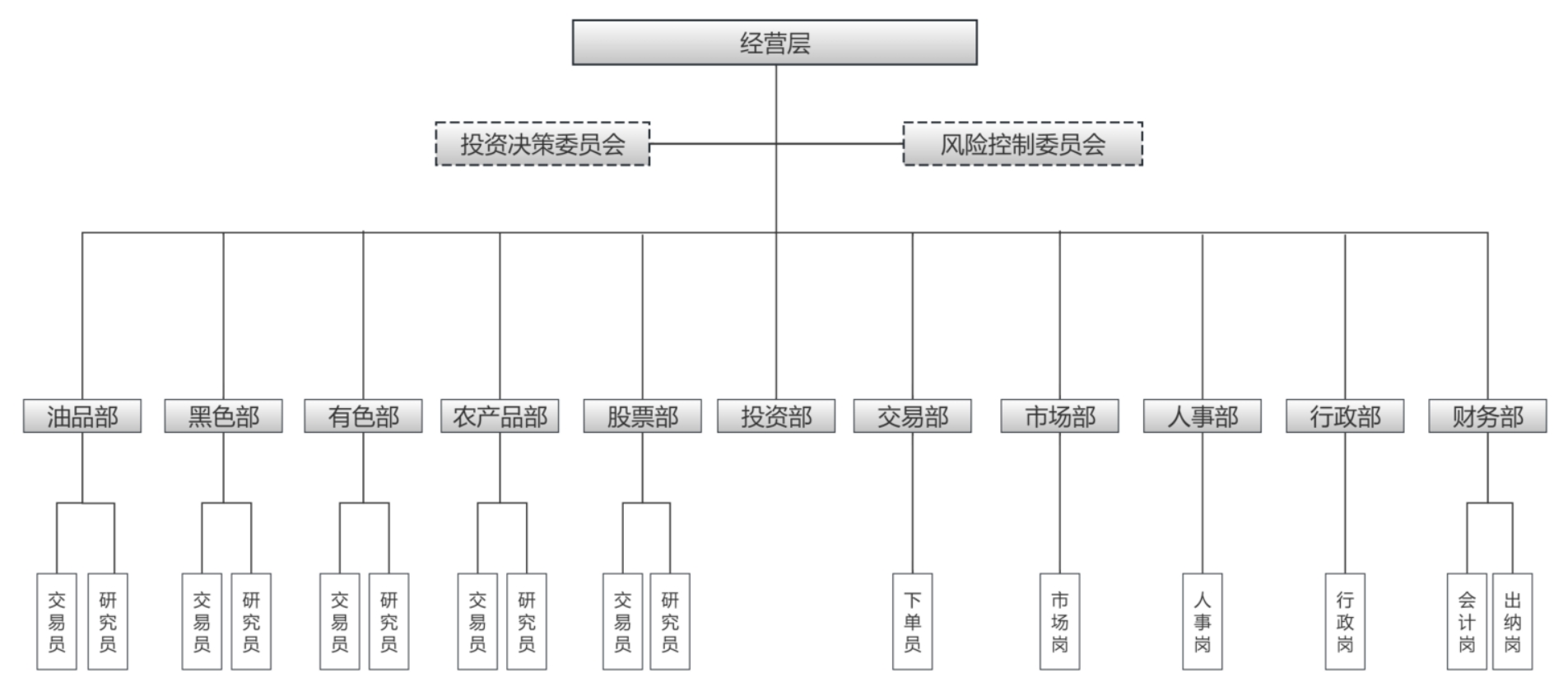 公司设有投资决策委员会、风险控制部、研究部、交易部等部门,团队成员具有丰富的行业经验和专业背景,为公司稳健发展提供有力保障。